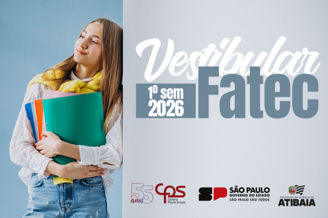 A Prefeitura de Atibaia informa que já é possível solicitar a isenção total ou a redução de 50% no valor da taxa de inscrição do Vestibular Fatec para o primeiro semestre de 2026. O pedido deve ser feito exclusivamente pelo site vestibular.fatec.sp.gov.br, até o dia 12 de setembro. As inscrições para o processo seletivo começam em 15 de setembro.